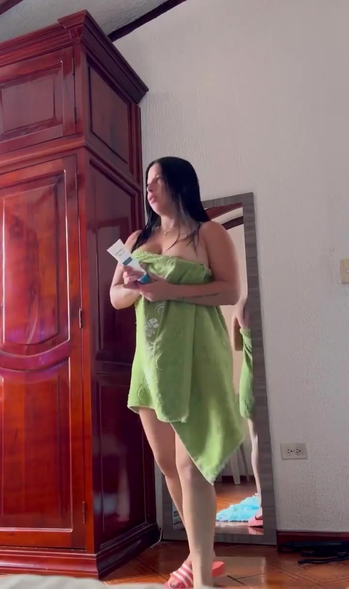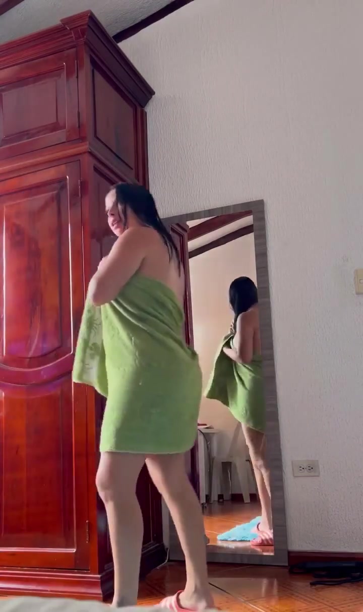 Naked girl changing after bathing